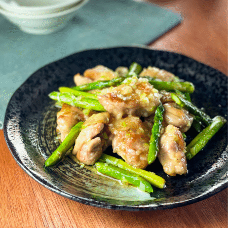 鶏肉とアスパラガスの万能ネギ塩だれ炒め